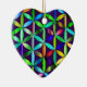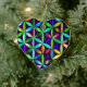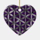 The Flower of Life symbol, is on the front and on the back of a heart-shaped ceramic Valentine tree ornament.