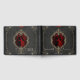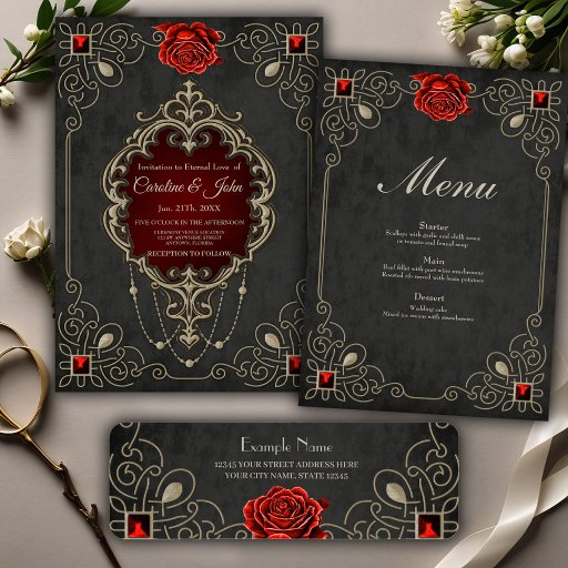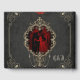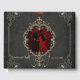 The beauty and richness of love is symbolized by the gold-coloured metal frame, while the dangling pearl necklace adds a touch of glamour and festivity. The dark red background exudes passion and warmth. The red rose, placed on the frame, enhances the romantic flair and symbolizes love and affection.