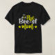 This black t-shirt features the phrase "The Bee-st Mom" in a playful design. "The" and "Mom" are written in a flowing yellow script, while "Bee-st" is in bold white letters with a small bee illustration above it and yellow stars on either side. It's a sweet design celebrating a wonderful mother.