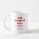 Mug featuring the names of the Bennet sisters in different shades of pink from Pride and Prejudice by Jane Austen: Jane, Elizabeth, Mary, Kitty and Lydia. It's the perfect mug for book lovers and fans of Jane Austen.