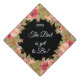 Elegant Graduation cap topper is bordered in beautiful hand painted, watercolor roses. The roses look stunning against a solid black background. Centre reads "The Best is yet to be" and it also has the year of Graduation to personalize it. All typography is in white.