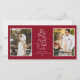 Playful script "The Best is yet to come! (hopefully)", funny quote, holiday photo card in red. Scrapbook style photo frames and doodle dots and stripe pattern backing.