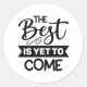 Brighten up your belongings with our "The Best is Yet to Come" Classic Round Sticker ✨. Perfect for laptops, notebooks, or water bottles, this motivational sticker is a daily reminder to stay optimistic and embrace the future with hope. Stick it wherever you need a touch of inspiration 🌟.