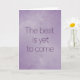 Offer a comforting message of future optimism with this serene card. The quote, "The best is yet to come," is centered in a gentle, complementary purple font. The background is a soft, dreamy lavender and lilac ombre with a subtle, painterly texture and faint sparkling details, evoking a feeling of calm and promise. This card is perfect for sending encouragement and hope during tough times, celebrating new beginnings (like a job or move), or as a thoughtful thinking of you note. Its soft, elegant colors and simple typography make it a sophisticated inspirational gift.