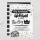 A fun and bold invitation for The Big One theme. Features hand drawn doodles and accents. Black and gold colours. Personalize the editable text, this for a first birthday party. Hip hop or Rap theme.