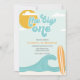 The Big One! Surfing Beach 1st Birthday invite with turquoise waves and orange surf board.