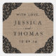 The Black Lace On Rustic Burlap Wedding Collection Square Sticker