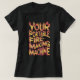 A graphic design featuring the words Your Portable Fire-Making Machine rendered in a flame-like font. The text is a gradient of orange, yellow, and red, simulating the appearance of fire.