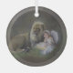 A guardian angel embraces a lamb, both rest next to a lion as Peace envelops the earth. Original oil painting by artist Liz Viztes. Holiday 2020.