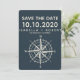 Designed to match our The Blue Compass wedding invitations and accessories this nautical chic weddin save the date features a vintage style hand drawn compass illustration in navy blue.
