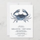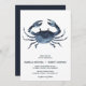 Nautical chic wedding invitation features a vintage style hand drawn crab watercolor illustration in navy blue.