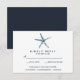 Designed to match our Seahorse &Starfish wedding invitations and accessories this nautical chic wedding RSVP features a vintage style hand drawn starfish illustration in watercolor navy blue.