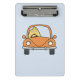 A bored yellow chicken driving with no excitement. Just rolling through life.