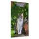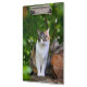 A cat sits in the green garden, next to a log and looks ahead - Two different sides