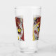 The drinking glass has a cat face on it a type of ed brown, black, yellow and a touch of a orange makes this glass bold and colorful.