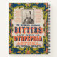 Bust-length portrait of a man at the centre of an advertisement for Celebrated Oxygenated Bitters. An elaborate decorative border with eye at top centre.