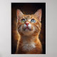 A hypnotic portrait of an orange cat with stunning eyes revealing a universe of dreams. With a magical background and golden particles, this digital art brings an ethereal and charming atmosphere. Perfect for those seeking mystery, cuteness, and sophistication in decor.