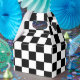 Black and white chequered flag seen in car races