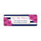 The chic modern luxe wedding collection features a classic navy blue and white stripe background accentuated with beautiful pink roses and a faux gold foil frame.