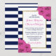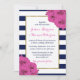 The chic modern luxe wedding collection features a classic navy blue and white stripe background accentuated with beautiful pink roses and a faux gold foil frame.