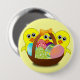 This Easter basket is brown in colour with a yellow bow on the top. The eggs in the basket are colourful with stripes and designs. The chicks are claiming this to be there basket. This pin comes in multiple sizes with vibrant colours. A size for everyone.