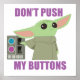 This cute graphic feature's The Mandalorian's Child and the funny text, "Don't push my buttons."