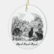 Black n' white vintage image of a choir of cats on round ornament