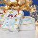 This design features a white and blue snowflake, a golden tree, coloured snowflakes and lots of snowmen dressed for a cold Christmas season. A red border was added. This Christmas wrapping paper is available in assorted styles, colours and sizes.