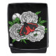 Hand drawn vector illustration of the cinnabar moth on a bouquet of peony flowers