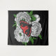 Hand drawn vector illustration of the cinnabar moth on a bouquet of peony flowers