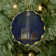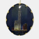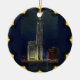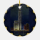 Beautiful vintage Christmas ornament showing The Citadel in Columbus, Ohio by night in 1935 with lights reflecting from the Scioto River. This building is now called LeVeque.