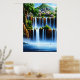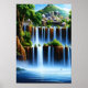 A beautiful city near a wonderful clear waterfall with a mountain in the background . This is a AI generated art.