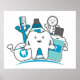 This dentist related design features dental floss, a tooth, toothbrush, toothpaste, mouthwash and dental mirror.