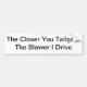 The Closer You Tailgate, The Slower I Drive Bumper Sticker