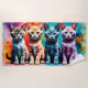 The Colorful Quartet: Paws and Paint! features four kittens posed against a vibrant, splattered backdrop that blends bold color drips with playful energy. The mix of bright hues and expressive feline personalities creates a cheerful, eye-catching piece that appeals to anyone who enjoys lively artwork and adorable cats. The design adds a fun pop of color to any space and brings a lighthearted, artistic feel wherever it’s displayed.