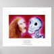 This poster features a whimsical couple--a woman and a skeleton--engaged in intimate conversation. It showcases the vibrant red background of the original watercolor, which contrasts dramatically with the cheerful skeleton's white bones and black shadows. It offers an unusual take on "true love" and Valentine's Day's passion.