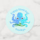 The cutest little aqua blue spotted octopus you have ever seen, in two shades of ocean blue with green seaweed and the words Happy Birthday and a name template in matching blue. You can choose your own background colour. This is perfect for a child's birthday. #nautical #underthesea #octopus