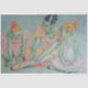 Sweet and colourful image of a dance teacher and her students printed on decoupage tissue paper. The painting is titled Leccion Practica De Ballet by