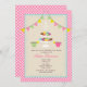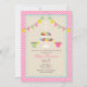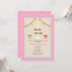 Une invitation de fête d'anniversaire comportant un thème de thé. L'invitation a une illustration d'un support deux à gradins des macarons français en haut avec une tasse de thé rose et verte avec le citron de chaque côté. Personnalisez avec l'âge au sommet du support. Invitez comporte également le solide et le guingan donnant un petit coup en haut et un arrière - plan rose de guingan. Personnalisez le texte avec des détails de votre occasion.