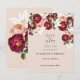 Jolie botanique enregistrer les cartes de date avec des roses rouges aquarelle, des pivoines roses et des Lys blancs sur un arrière - plan blush. Les invitations correspondantes, RSVP, numéros de table et bien d'autres sont également disponibles dans cette conception.