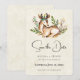 Enregistrez la carte de dattes avec un joli cerf posé au milieu de la flore feuillue. Style Boho rustique.