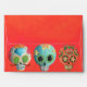 According to Mexican traditions, El Dia de Los Muertos is the day of joy, dancing and partying. Day of the Dead Festival is a joyful Mexican holiday. Our envelope has three skulls made of sugar (each sugar skull - different colour), wonderful Day of The Dead art. It's colourful and joyful - perfect for Halloween or Dia de Los Murtos postage.