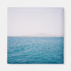 Rich blue waters of the Atlantic Ocean under a light blue sky with some of the volcanoes of Lanzarote forming a misty backdrop to the scene.