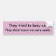"They tried to bury us. They didn't know we were seeds." bumper sticker for the women's march. Let Trump and his minions know that women will not be silenced, ignored, or made second class citizens. "They tried to bury us. They didn't know we were seeds."