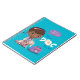 The cover of the notebook is very durable and shiny. I thought it was an 8x10 but it's a 5x7 notebook. The design on the notebook is exactly as pictured! The color is very vivid and pretty! It looks very nice and will be a nice touch to my daughter's Doc McStuffins party.