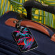 Pleasantly surprised at the quality of the luggage tag. It was exactly as shown and my daughter will be pleased. The address label on the back of the luggage tag was neat and clear.
