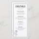 Imagine receiving this beautifully designed drink menu – it’s like a preview of the delightful beverages awaiting you! The front features an elegant layout with sections for e.g. Cocktails, Spirits, Wines, and Beers, listing delicious options like “Classic Mojito,” “Ginger Old Fashioned,” and “Sauvignon Blanc.” At the top, customizable the names and their wedding date add a personal touch.