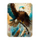 Feast your eyes on our stunning eagle flexible fridge magnet! This exquisite piece features a breathtaking AI-generated illustration of a Bald Eagle emerging gracefully from a traditional feathered dreamcatcher, adding a touch of magic to your kitchen or any other space with a metal-backed surface.
