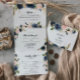 This elegant gold blue floral wedding of trifold invitation is perfect for a rustic wedding. The design features beautiful hand-painted dark blue, blue, navy, pink , blush, gold flowers and green foliage, bunched into elegant bouquets.