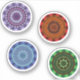 Water, fire, earth, and wind themed concentric circle mandalas come together in this colourful design. Each features a similar centre and outer layer with the others being appropriate to the element.